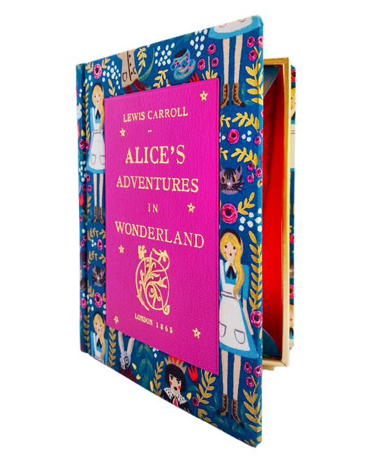 Alice in Wonderland - Linen and Leather Book Clutch