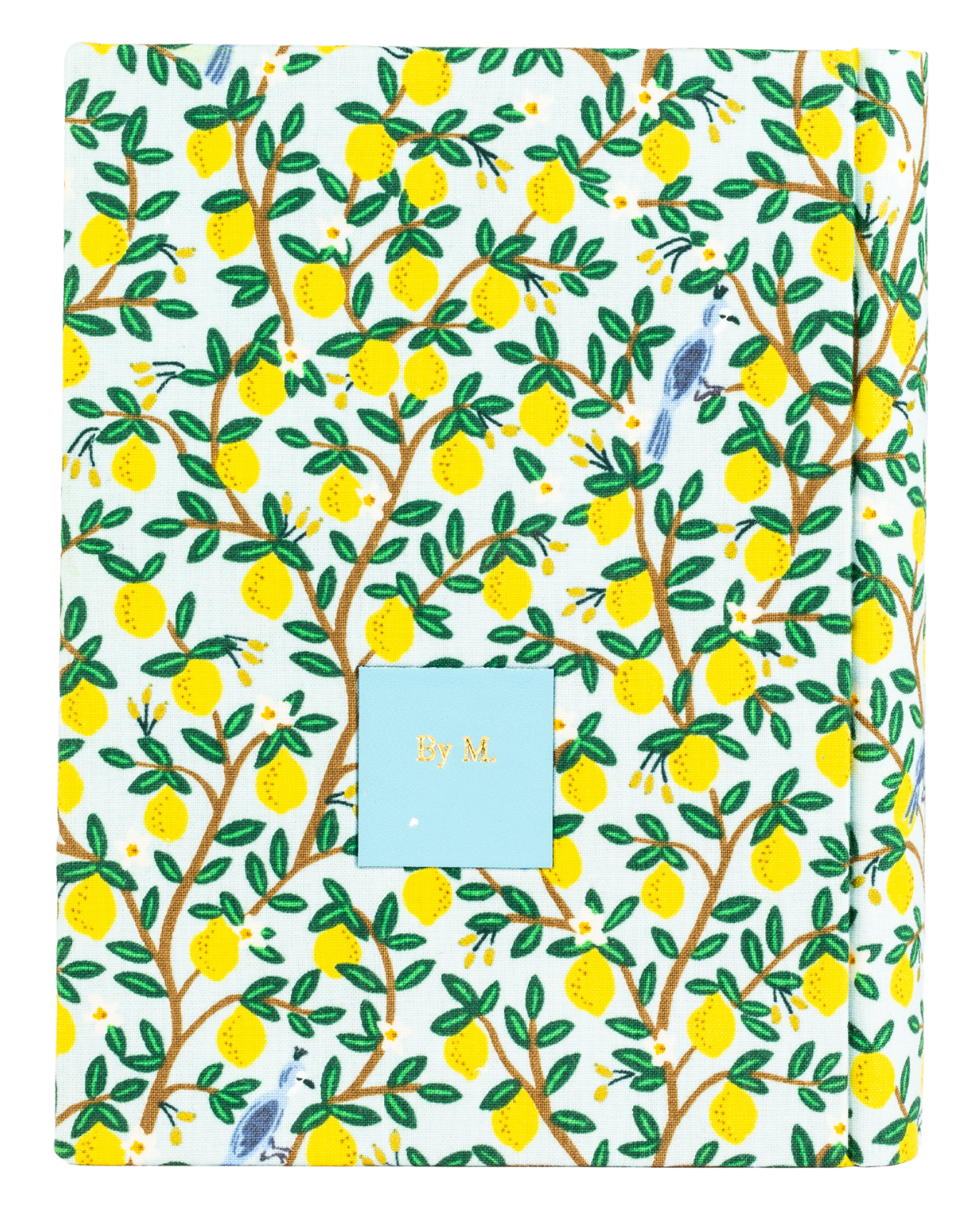 A By M. Book-Clutch for gourmets and Amalfi Coast lovers. Italian recipes that will pair your most glamorous summer outfits. Amalfi Coast Cook Book is beautifully handcrafted with three different materials. A subtile and romantic pastel blue cotton bursting with an iconic lemon tree pattern is matching the yellow and sky blue leathers. You have all the summer colours. The embossing is handmade with gold and bronze foil to create a two-shade title that shines night and day.