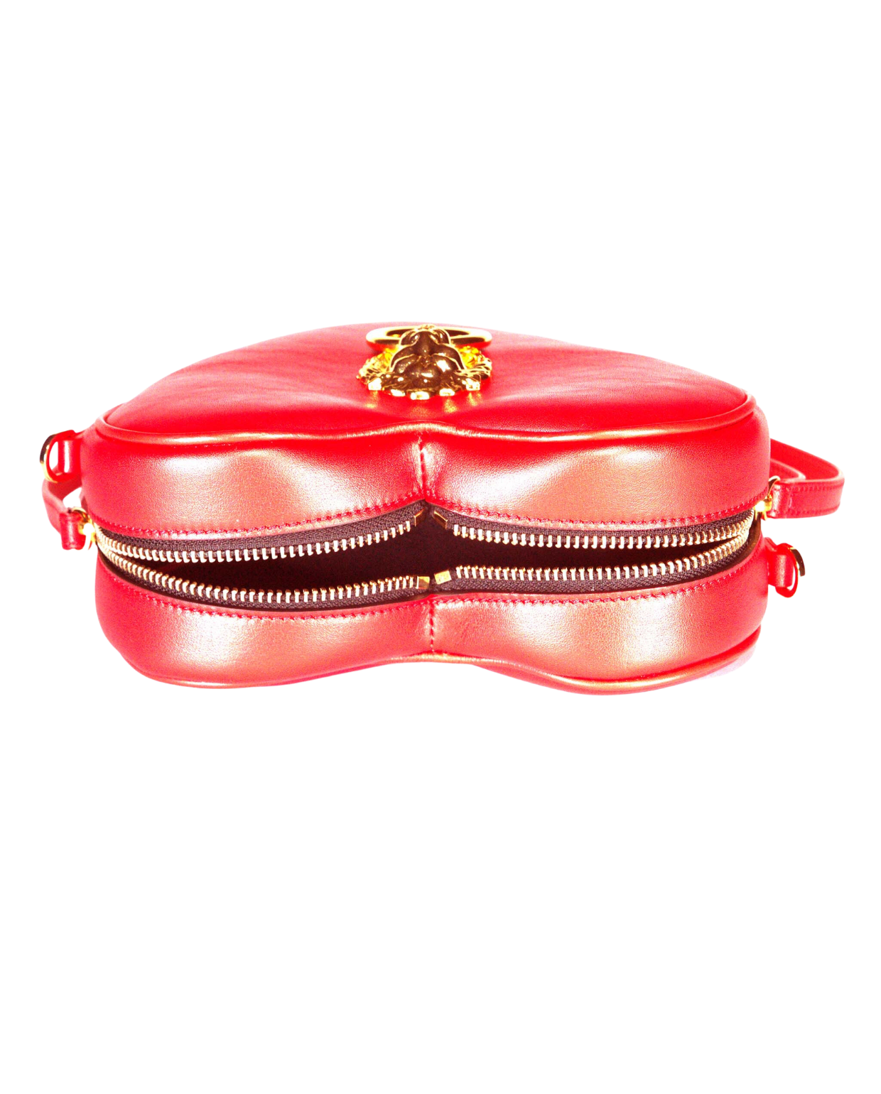 The bag is fitted with external zips that work as a double handle or as a subtle bow embellishment.