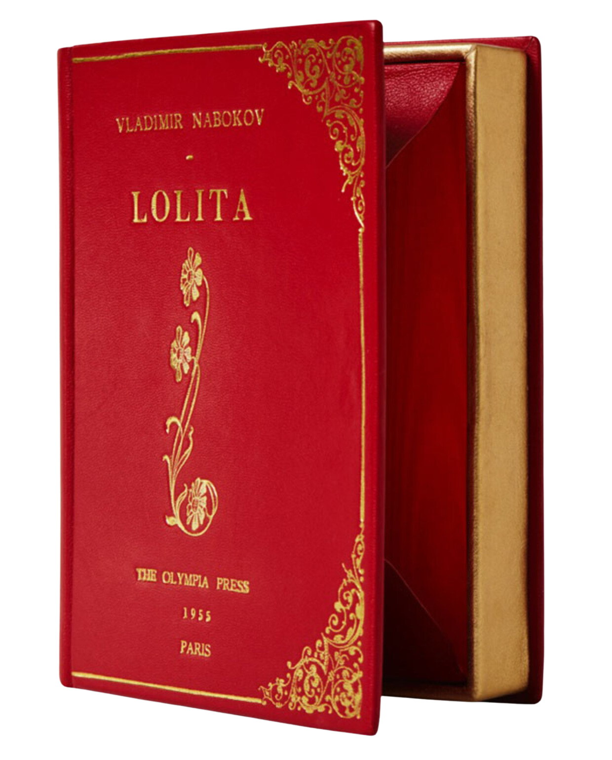 Lolita by Vladimir Nabokov has become a one-of-a-kind, beautiful vibrant red leather book-clutch bag.