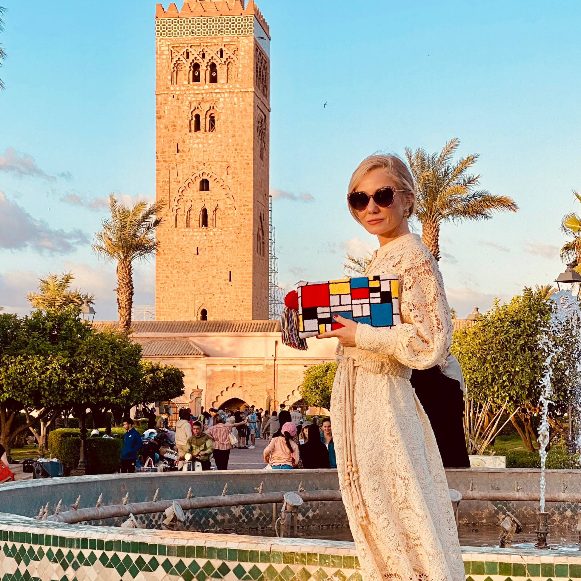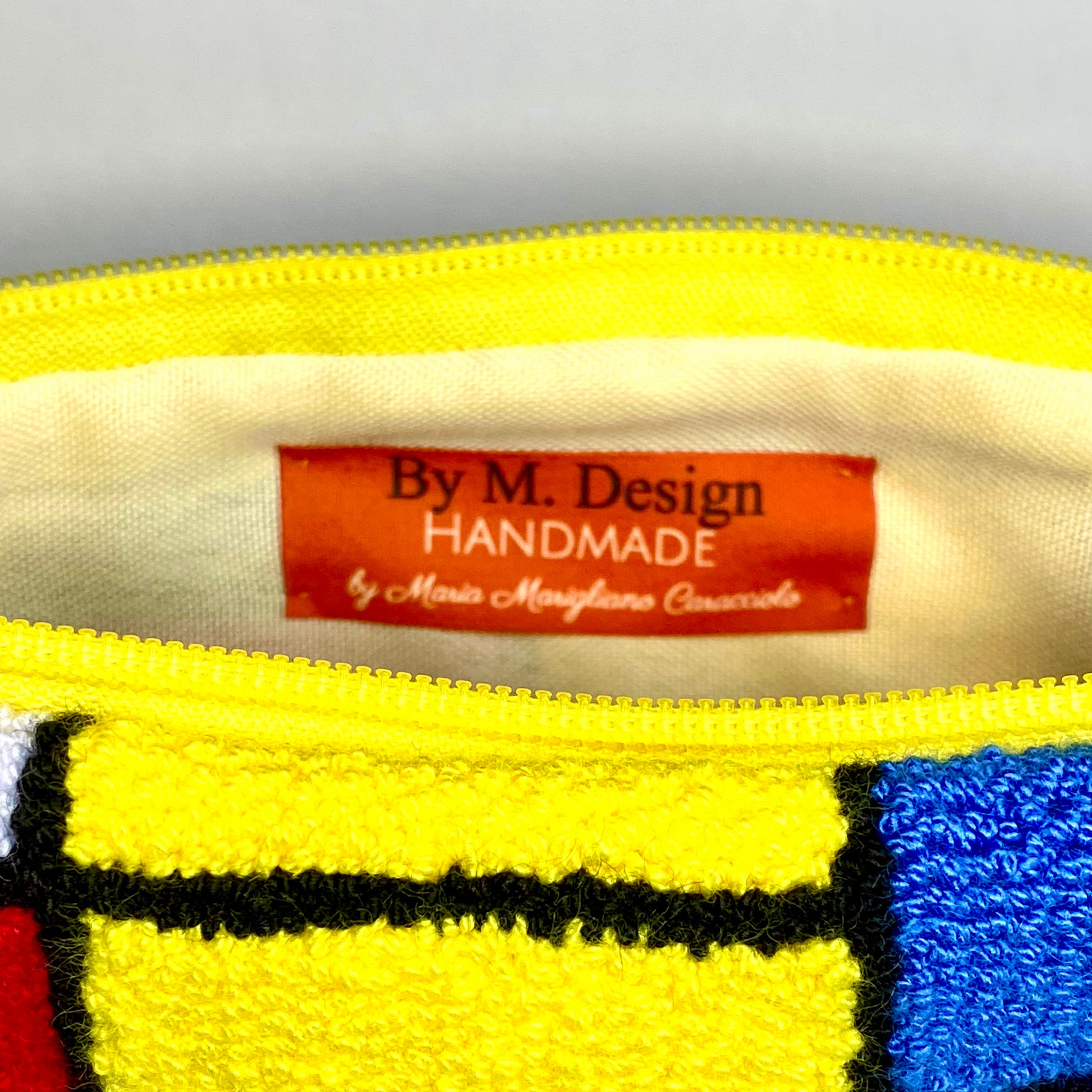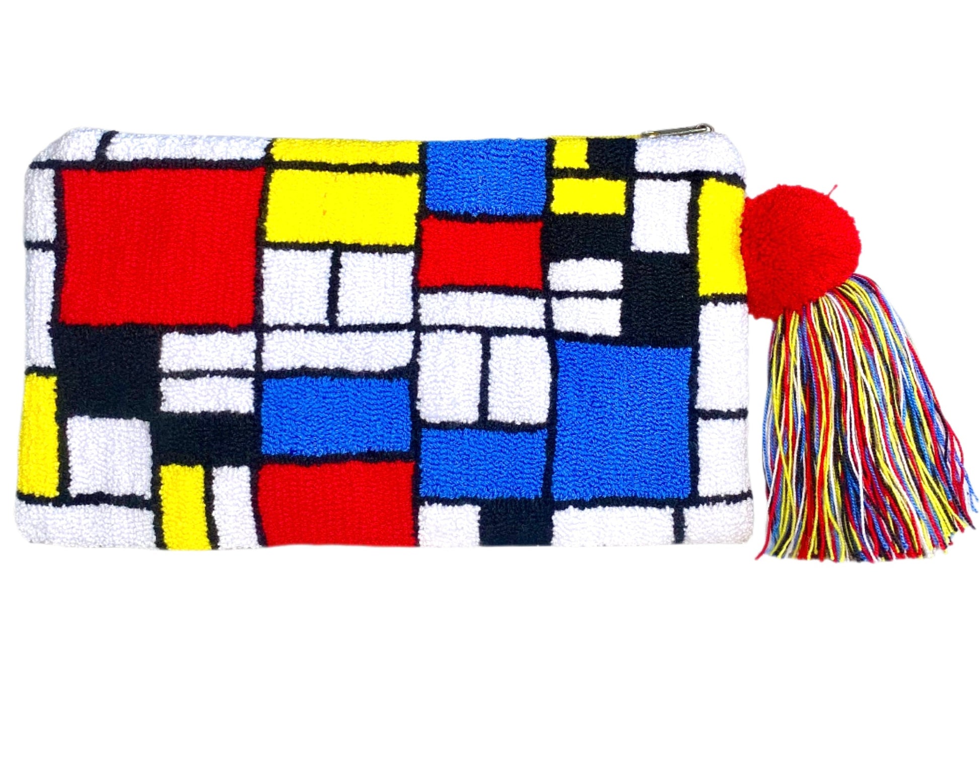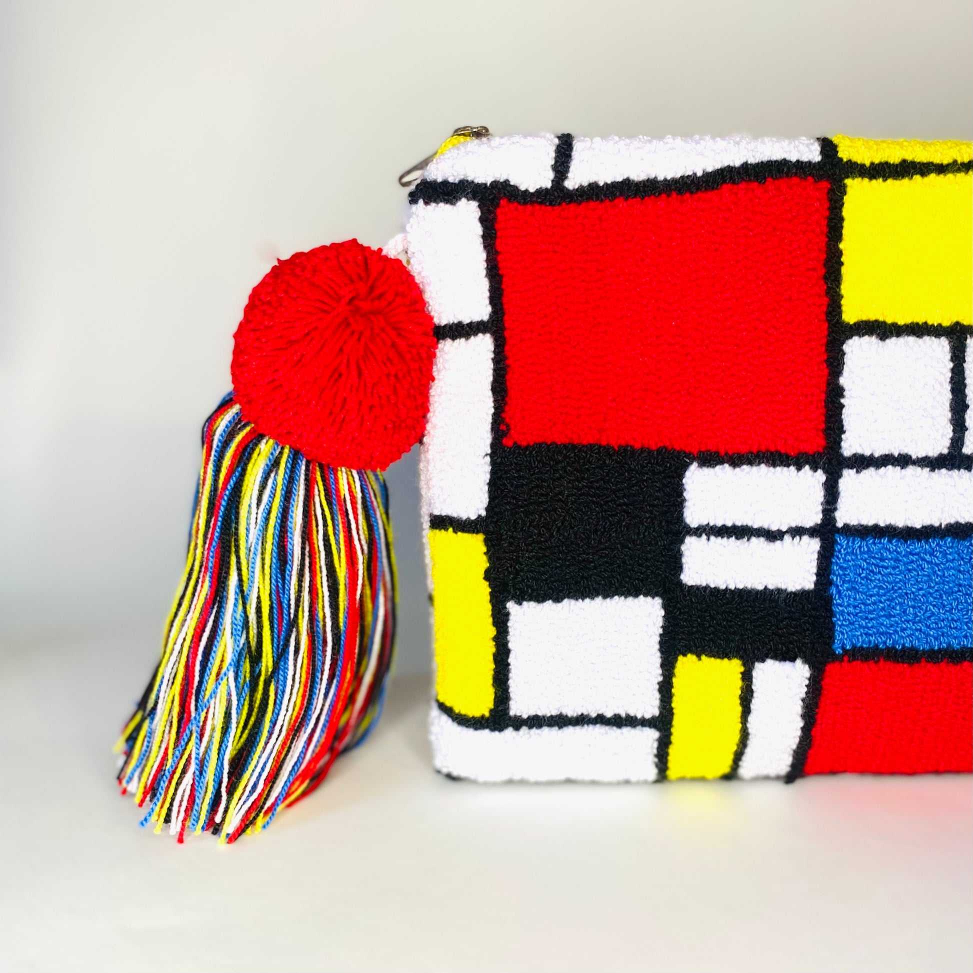 By M. Mondrian Clutch is a textile work of art. The iconic geometric pattern is handwoven on a loom. The clutch is double sided. By M. Design has selected the best female artisans for this project. We have used an ancient crochet tapestry technique passed down the generations from mother to daughter. Each bag is completely unique. Bring it on holidays with you — pack them flat or fold them. They are brilliant to save space! We Love the big Mondrian Colour Palette Tassel. Wash it by hand in cold water.