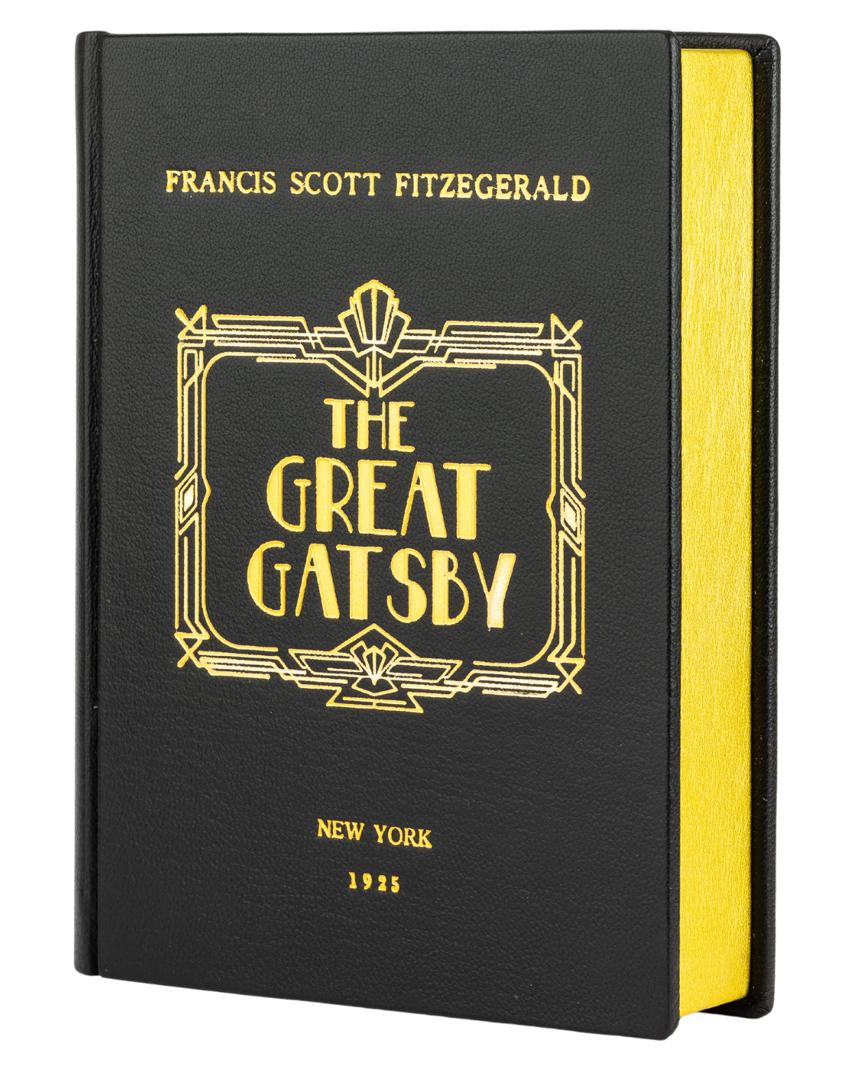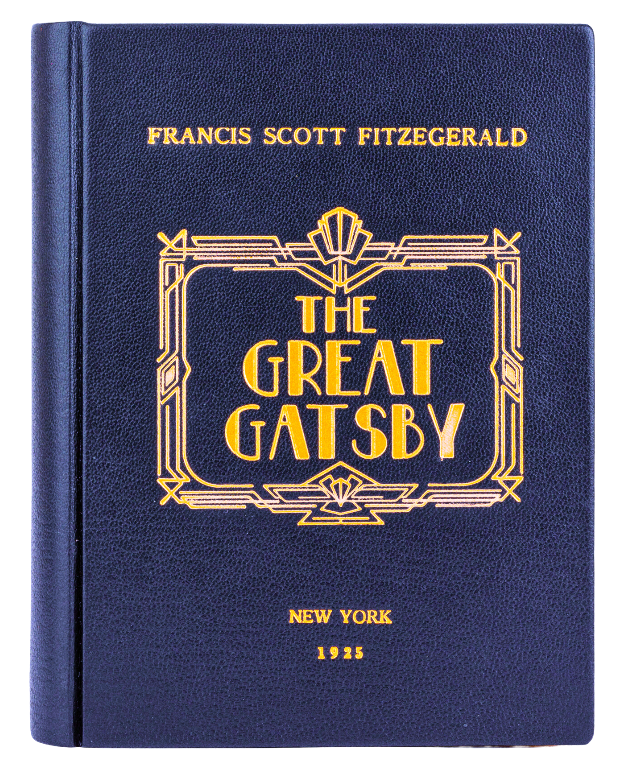 Choose between black or midnight blue leather. The gold of the decorations and the pages looks stunning on both.